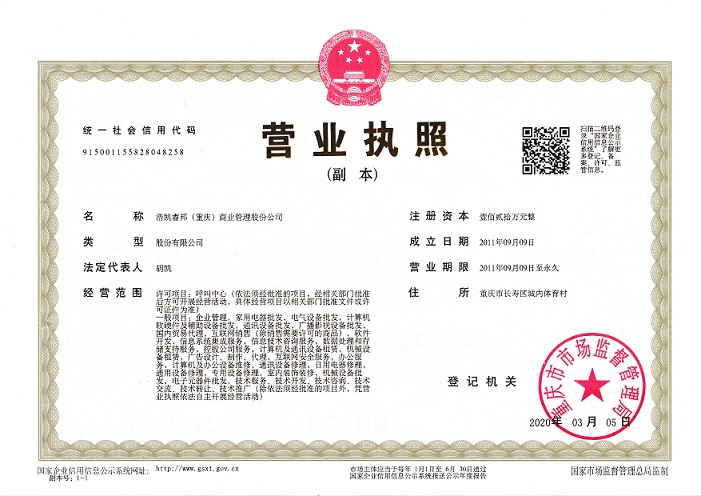 浩凯睿邦(重庆)商业管理股份公司